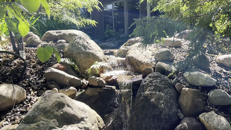 A professionally-built water feature's aesthetic should be shaped by one goal before the rest: make it look like it's always been there. Therefor, all the manufactured parts that make a waterfall's re-creation possible - the pump vault, the liner, the outlet - are all carefully hidden, leaving and RVA pondless waterfall looking like a natural spring that appears from and disappears back into the Earth.